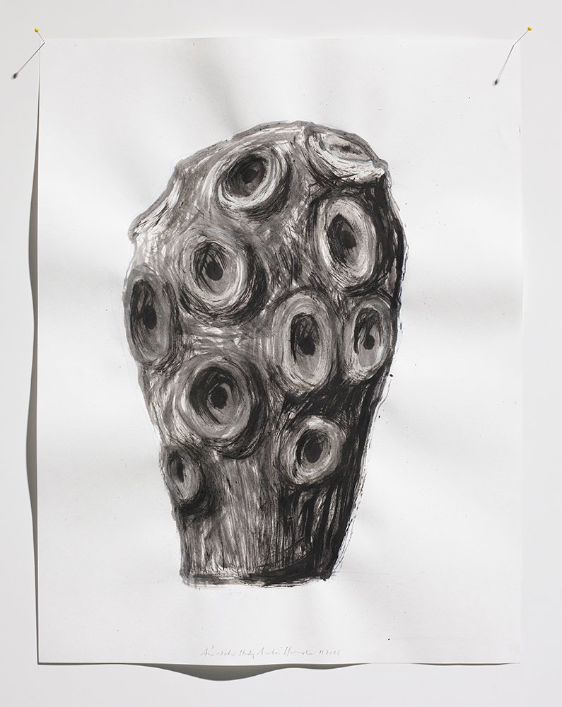 airmaker [stromatolite] study: rotring ink, carbon and ash on paper Sheet size 568mm h x 443 w. 112025